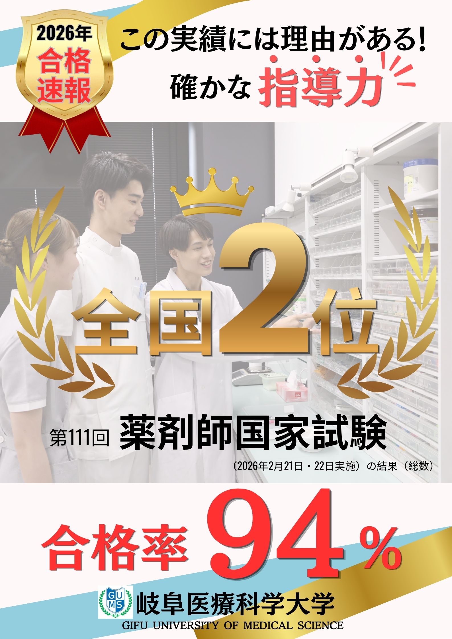 【岐阜医療科学大学】本学の薬学科第1期生が「薬剤師国家試験」全国2位の快挙を達成